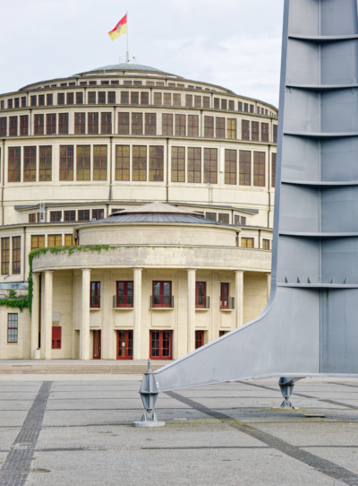 Tuż obok Hali Stulecia we Wrocławiu stoi 96 metrowa Iglica, która jest jednym z najbardziej rozpoznawalnych symboli Wrocławia. Nie jest częścią kompleksu wystawowego stworzonego w 1913 roku na potrzeby WYSTAWY STULECIA. Ta imponująca, ażurowa konstrukcja ze stali została postawiona w 1948 roku z okazji Wystawy Ziem Odzyskanych i miała symbolizować odrodzenie i dynamikę rozwoju terenów przyznanych Polsce po II wojnie światowej. Jest nie tylko symbolem powojennej historii miasta, ale także kluczowym punktem orientacyjnym, widocznym z daleka. W wirtualnym spacerze (VR) oferowanym przez Visitor Centre w Hali Stulecia, można podziwiać ją z lotu ptaka, razem z całą panoramą otoczenia.