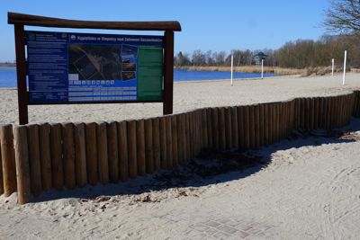 - Wieża widokowa: Z plaży można bezpośrednio dojść do wieży widokowej, a za nią nad szuwarami jest kładka spacerowa, którą można dojść aż do Kanału Młyńskiego.