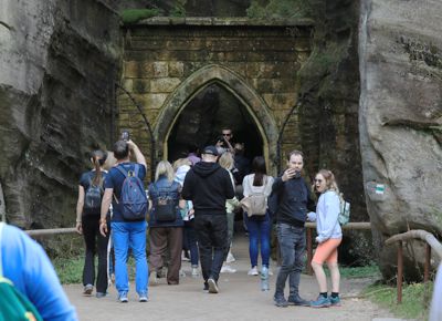 TŁUMY - Brama jest jednym z najczęściej fotografowanych miejsc w Czechach. W sezonie letnim, w godzinach 11:00–14:00, przed bramą często tworzą się „korki” turystyczne. Aby być tu bez tłumów, najlepiej pojawić się wcześnie rano (zaraz po otwarciu kas) lub późnym popołudniem. Przed godziną 9:00 rano nie ma tłumów, a światło słoneczne przebijające się przez wysokie skalne ściany tworzy niesamowitą atmosferę.