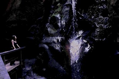 Rzeka Metuja przeciska się przez skalne szczeliny i tworzy Mały i Wielki Wodospad (Malý a Velký vodopád). Mały ma niespełna 4 metry wysokości, a Wielki Wodospad ma 15 metrów wysokości, a jego przepływ można "zwiększyć" na życzenie – flisacy u góry otwierają śluzę po okrzyku turystów: "Karkonoszu, daj nam wody!" lub "Rübezahl gib uns wasser" lub po czesku "Krakonoši, dej nám vodu". Nad Wielkim Wodospadem znajduje się Jezioro Adrszpaskie, fot. 01.05.2025, SNW