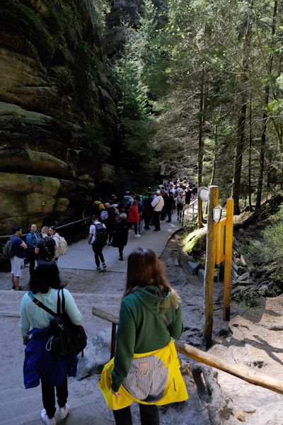 Większość turystów wybiera krótkie szlaki, bliżej Adrszpachu lub trasę z Adrszpachu do Teplic i powrót kolejką. Szlaki w Teplickich Skałach są mniej licznie odwiedzane, ale i tam są miejsca jak np. punkt widokowy Ruiny Zamku Strzemię, gdzie trzeba stanąć w kolejce, by wejść na schody.