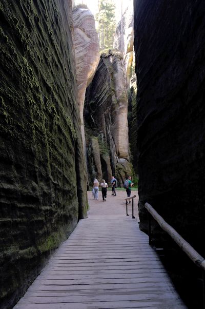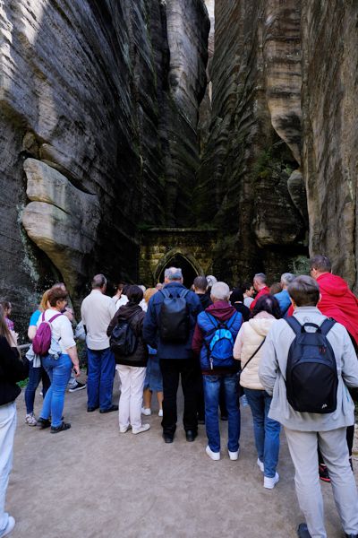 TŁUMY: Najbardziej zatłoczona jest okolica Gotyckiej Bramy, zależnie od tego czy wyruszymy z Adrszpachu czy z Teplic będzie jednym z pierwszych lub ostatnich spektakularnych punktów na naszej trasie. Sporo turystów jest na zielonej pętli Skalnego Miasta Adrszpach. Bliżej Teplic jest mniej turystów.