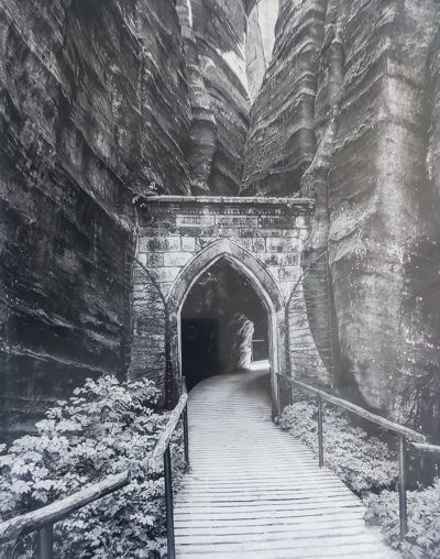 Gotycka Brama w Skalnym Mieście (Adršpašskoskalní město) w Czechach bardzo często pojawia się jako motyw dekoracji ściennych w hotelach i apartamentach nawet tych znacznie oddalonych od Adrszprachu, fot. 01.05.2025, SNW