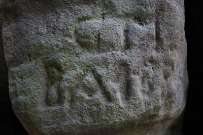Napisy w piaskowcu w pobliżu Gotyckiej Bramy, fot. 01.05.2025, SNW