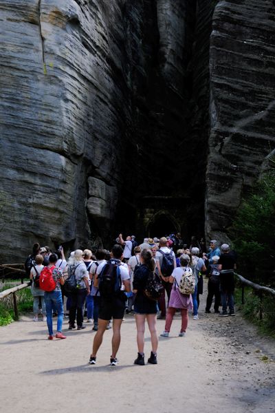 TŁUMY - Brama jest jednym z najczęściej fotografowanych miejsc w Czechach. W sezonie letnim, w godzinach 11:00–14:00, przed bramą często tworzą się „korki” turystyczne. Aby być tu bez tłumów, najlepiej pojawić się wcześnie rano (zaraz po otwarciu kas) lub późnym popołudniem. Przed godziną 9:00 rano nie ma tłumów, a światło słoneczne przebijające się przez wysokie skalne ściany tworzy niesamowitą atmosferę.