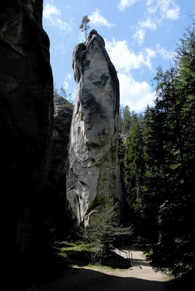 Głowa Cukru (Homole cukru / Zuckerhut) - stoi na wąskiej podstawie, podczas gdy góra jest szeroka i masywna. Turyści często "podpierają" ją patykami dla żartu. Znajduje się ok. 515 metrów od wejścia w Adrszpachu.