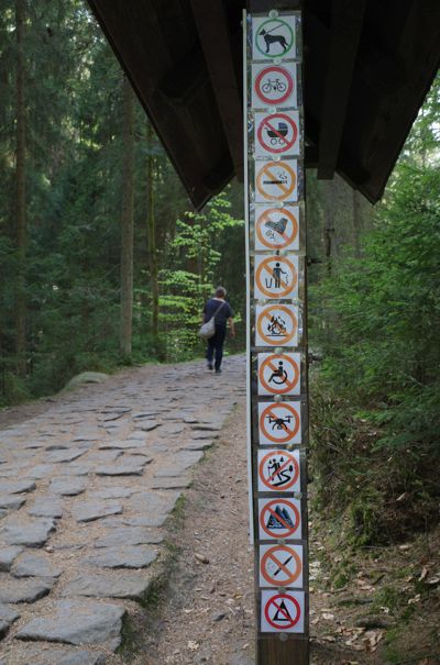 ZAKAZY: W całym rezerwacie obowiązuje wiele zakazów, m.in. zakaz schodzenia ze szlaków, jazdy na rowerze i palenia papierosów. Ważne ! — na trasie nie ma toalet.
