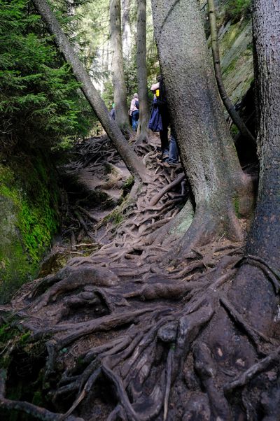 TŁUMY: Najbardziej zatłoczona jest okolica Gotyckiej Bramy, zależnie od tego czy wyruszymy z Adrszpachu czy z Teplic będzie jednym z pierwszych lub ostatnich spektakularnych punktów na naszej trasie. Sporo turystów jest na zielonej pętli Skalnego Miasta Adrszpach. Bliżej Teplic jest mniej turystów.