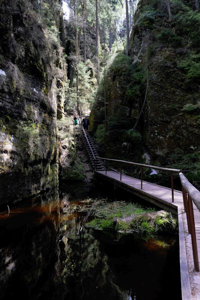 Trasa Adršpach - Teplice nad Metuji w Czechach. W Wilczym Wąwozie ścieżka bywa błotnista nawet w suche dni. Jest też sporo drewnianych kładek i schodów, fot. 01.05.2025, SNW