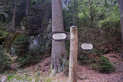 Trasa Adršpach - Teplice nad Metuji w Czechach. Drogowskaz Mały i Wielki Wodospad (Malý a Velký vodopád), fot. 01.05.2025, SNW