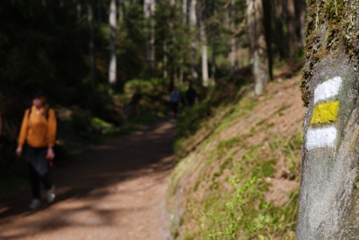 Trasa Adršpach - Teplice nad Metuji w Czechach. Bliżej Teplic krajobraz jest mniej skalny i bardziej leśny, fot. 01.05.2025, SNW