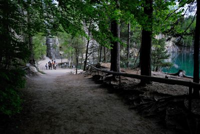 Skalne Miasto Adršpach w Czechach. Jezioro Pískovna. Początek zielonego szlaku, fot. 01.05.2025, SNW