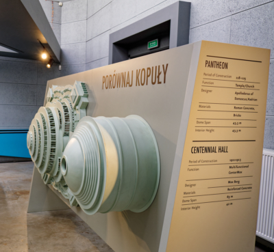 Wrocław. Wewnątrz Hali Stulecia można zobaczyć makietę Hali i Partenonu i porównać wielkości kopuły,
