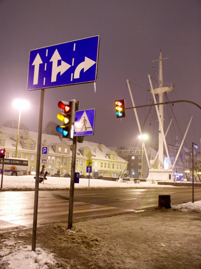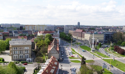 Szczecin, plac Żołnierza Polskiego. Na placu zdemontowany w 2013 roku Maszt ze statku s/s Kapitan K. Maciejewicz, po lewej - DOMKI PROFESORSKIE, za nimi Zaułek Mariacki i LO nr 9, fot. 04.05.2008, SNW