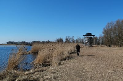 - Wieża widokowa: Z plaży można bezpośrednio dojść do wieży widokowej, a za nią nad szuwarami jest kładka spacerowa, którą można dojść aż do Kanału Młyńskiego.